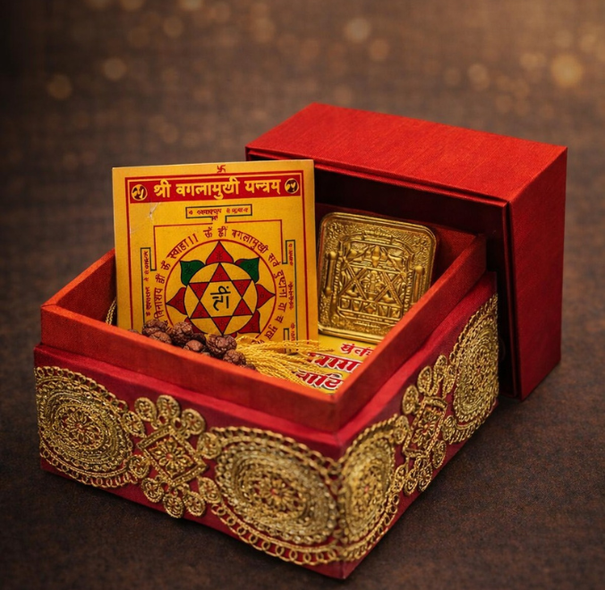 (Includes Panchdhatu Yantra + Car Yantra + Energized Rudraksha Mala + Baglamukhi Chalisa Book)